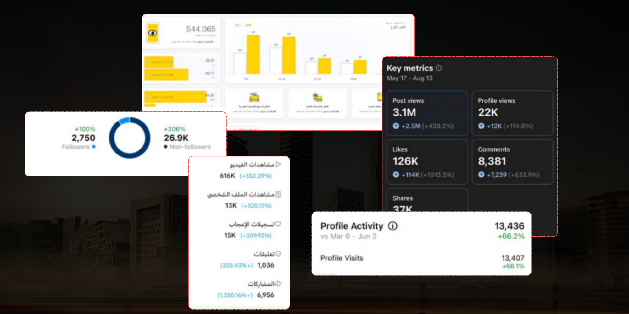 الحملات الإعلانية من أبرز الحملات في مجال نشر الوعي وتعزيز العلامة التجارية (نــاتشـولادا) “وين راح كويك؟” إدارة الإعلانات ندير لك الإعلانات من الألف للياء: ستراتيجية مدروسة، إعداد تتبّع صح، كرييتف سعودي، وتحسينات أسبوعية عشان كل ريــــــــــــــــال يوصـــــــــــــل مبيعـــــــــــــــــات أو قيـــــــــــــــــــــــود حـقـيـقــــــــــــية. نتائج الحملات لغة الأرقــــام هي دائمًا الأصدق إدارة منصات التواصل نمسك حساباتك من الألف للياء: خطة محتوى شهرية، إنتاج بصري احترافي، كابشن سعودي، نشر وجدولة، ومتابعة الأداء بتقارير واضحـــــة عشـــان صوت براندك يطلـــــــــع عالمي ويبيـــــــع.